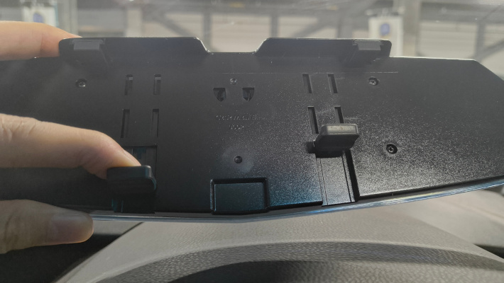裏側にある可動性の突起を使って、純正ミラーに挟み込むだけです