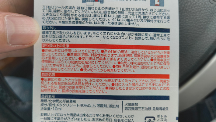 ねじロックはその名の通り、ネジが緩みにくくするための商品です